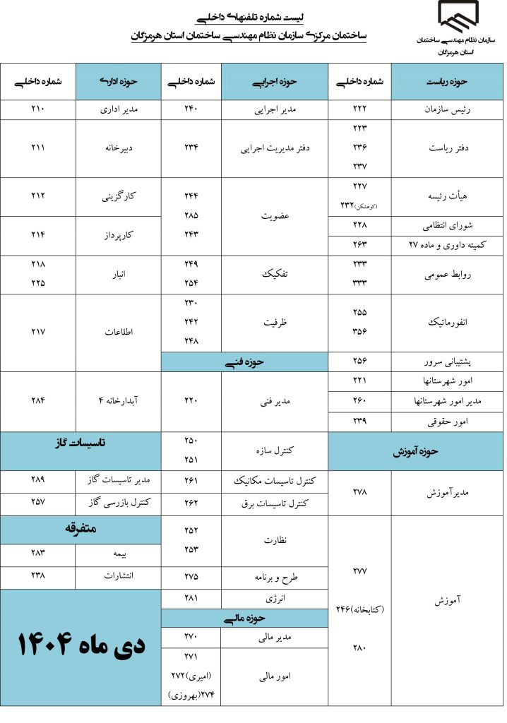 ساعت کاری نظام مهندسی ساختمان استان هرمزگان شنبه تا چهارشنبه 07 – 13می باشد.